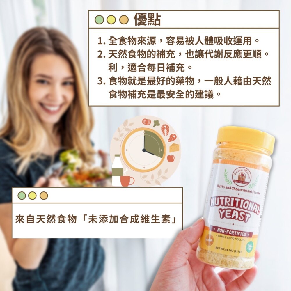 此款是成本較高的 "非強化"營養酵母, 何謂非強化? 就是100%營養酵母, 沒有額外添加維生素B的一組天然食品!!