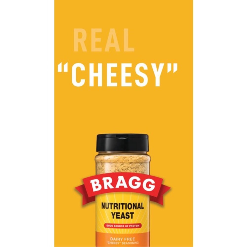 帶有『起司口感』的純素食營養酵母,低鈉、零膽固醇,又有素食者普遍缺乏的B12,適合添加於各式湯品、沙拉、果昔、穀麥片、義大利麵….等等料理增添食物風味與營養。約翰羅賓斯書『心好生活』提到人每天要攝食補充的十大食物中,營養酵母就是其中一個重要的補充食物。網站中,美國醫生 麥可 格瑞格也特別錄製一支影片提到阿婆(Bragg)品牌的營養酵母是最好的。
